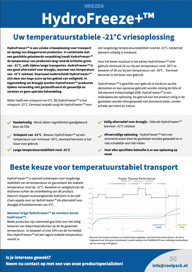 Leaflet HydroFreeze™ –21 °C vriesoplossing