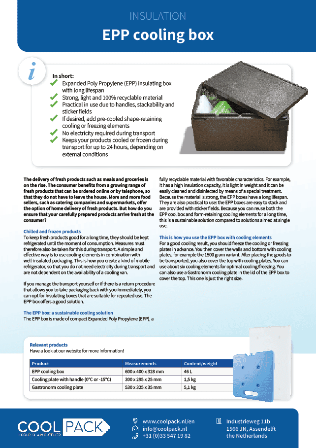 Our experts are happy to share their relevant knowledge. On this page you will find an overview of the various (free!) available downloads. For example, read all about the optimal transport conditions for your industry in one of the Whitepapers. And find out which (cooling) solution is most suitable for your application by looking at the brochures and leaflets.
